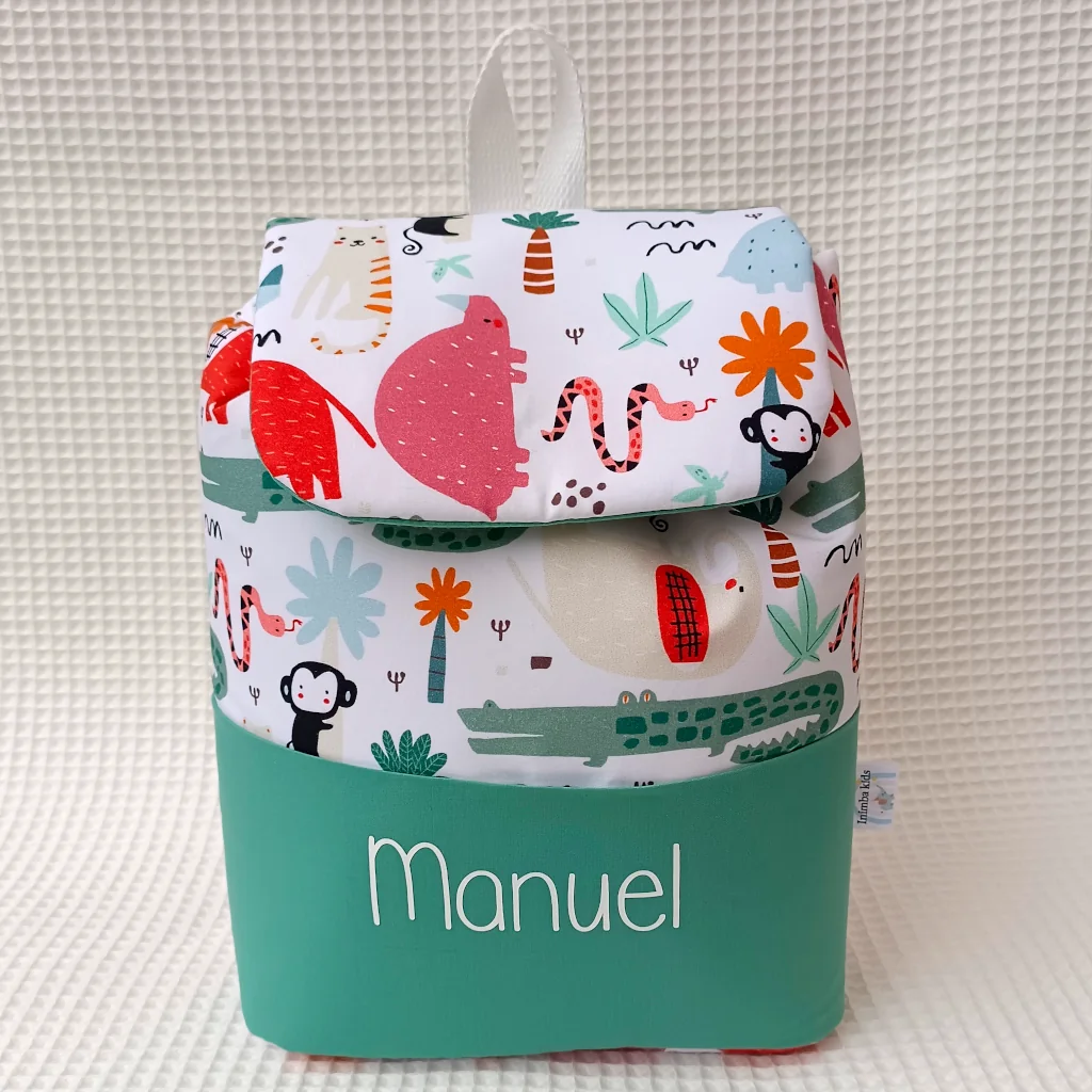 Mochila guardería artesanal animales de la selva