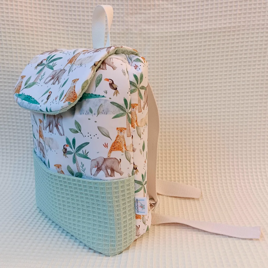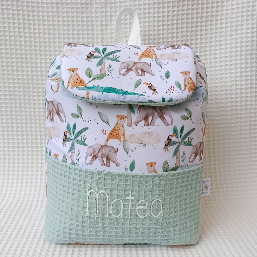 Mochila guardería artesanal elefantes y cocodrilos